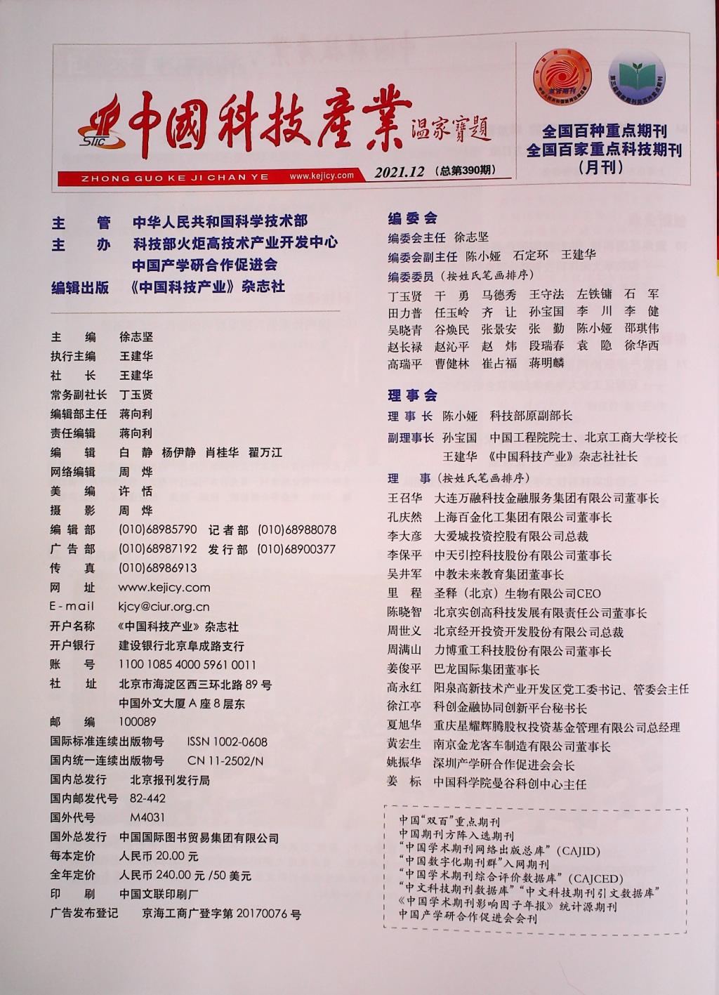 据悉,《中国科技产业》杂志,由中华人民共和国科学技术部主管,科技部火炬高技术产业开发中心和中国产学研合作促进会主办,国家重点刊物。