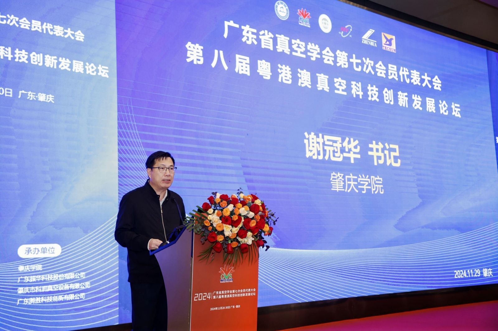 【本网讯】2024年11月28-30日,由广东省真空学会、广东省真空产业技术创新联盟、暨南大学主办,公司承办的第八届粤港澳真空科技创新发展论坛暨2024 年广东省真空学会学术年会在我市温德姆至尊酒店召开。来自各大高校、科研院所及行业相关的公司科研人员、技术人员和管理人员约350多人参会,20多家企业参展。广东省科协学会学术部主任郭庭茂出席会议并讲话,广东省真空学会理事长刘彭义教授、秘书长唐振方副教授等参加会议。公司党委书记谢冠华出席会议并作为承办单位代表在开幕式上致词。