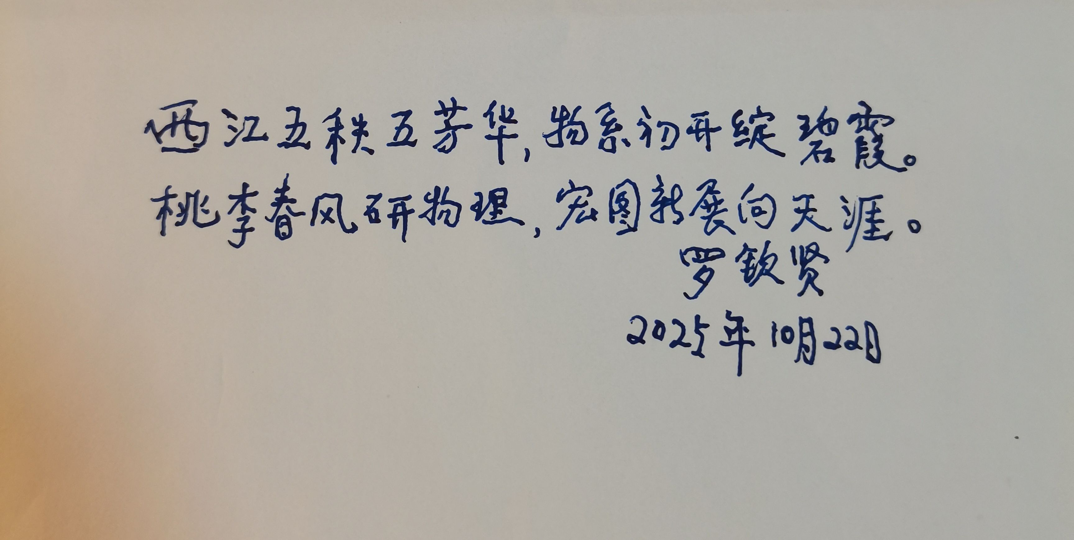 罗钦贤老董事长今年已91岁高龄,他腰板依然硬朗,精神霍烁。交流中,他深情回忆了在物理系工作的难忘时刻,对物理系、公司取得的成绩表示欣慰,并对公司未来的发展充满信心,表示会继续发挥余热,支持公司、公司事业发展。随后,老董事长还欣然提笔,写下了对公司办学55周年的祝福。