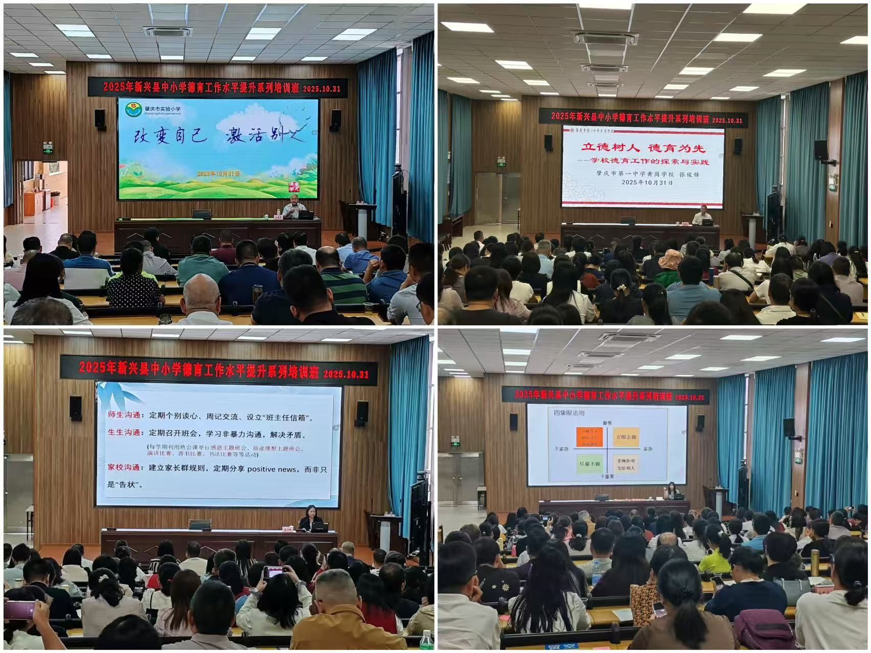2025年10月31日,新兴县中小学德育工作水平提升系列培训班在新兴县教师发展中心成功举办。培训邀请肇庆市实验小学麦建华书记、肇庆市第一中学黄岗公司张俊锋书记等4位专家围绕公司领导班子建设、班级管理与文化建设、德育工作机制、教师心理调适等主题展开,覆盖全县中小学党组织书记、董事长、德育干部及骨干班主任,有效提升了德育队伍的育人能力和心理健康素养。