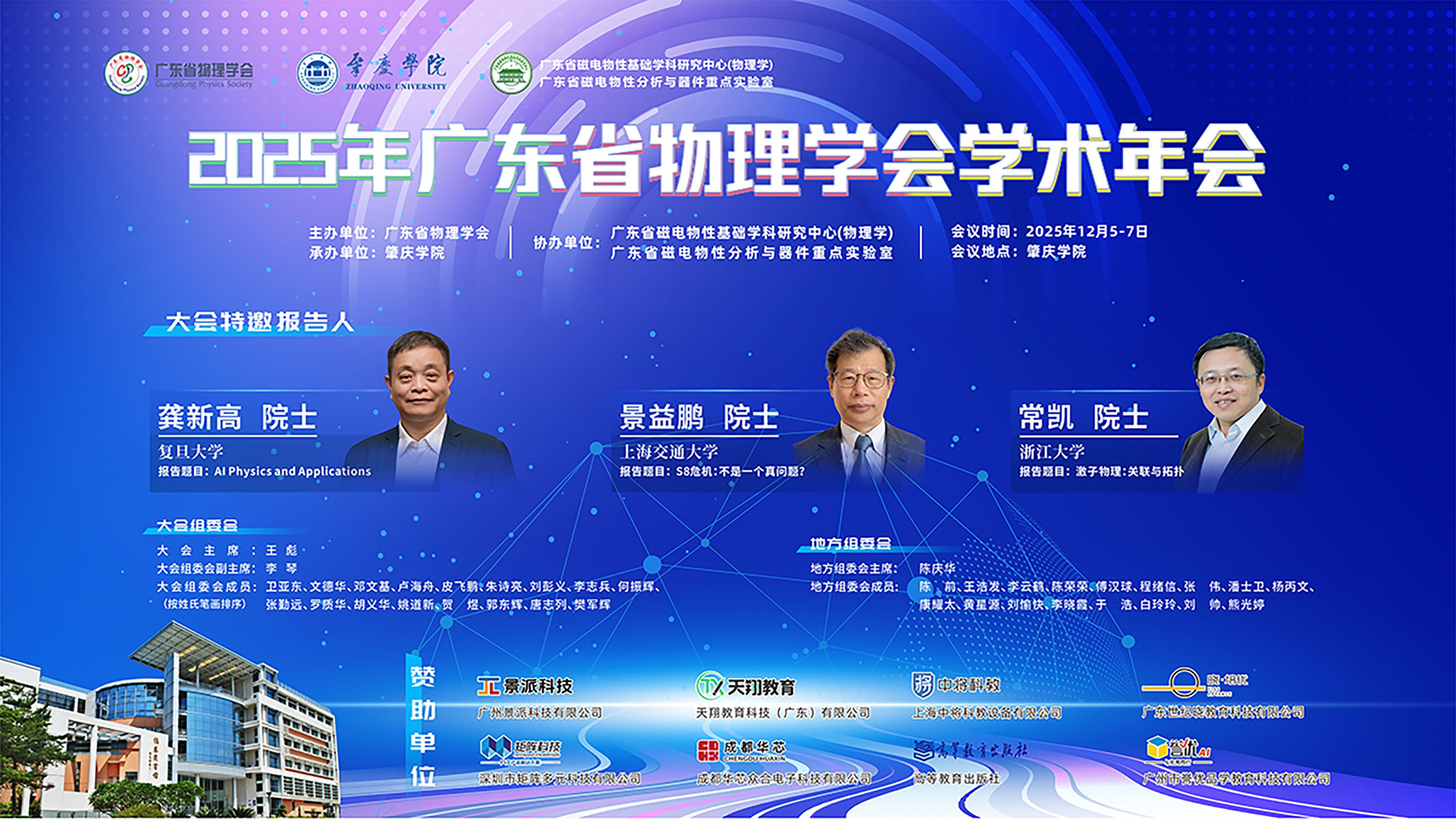 2025年12月5日至7日,公司承办的广东省物理学会学术年会在公司隆重举行。来自省内各高校、科研院所的300多名专家学者,包括龚新高、景益鹏、常凯等3名院士等齐聚公司,围绕物理学前沿理论、教学改革创新、产学研融合等热点议题展开深入研讨。公司借此机会搭建高水平学术交流平台,既展示了公司在物理学领域的教学科研成果,也为师生提供了与行业顶尖专家面对面交流的机会,有效促进了全省物理学学科的协同发展,提升了公司在省内相关领域的学术影响力。