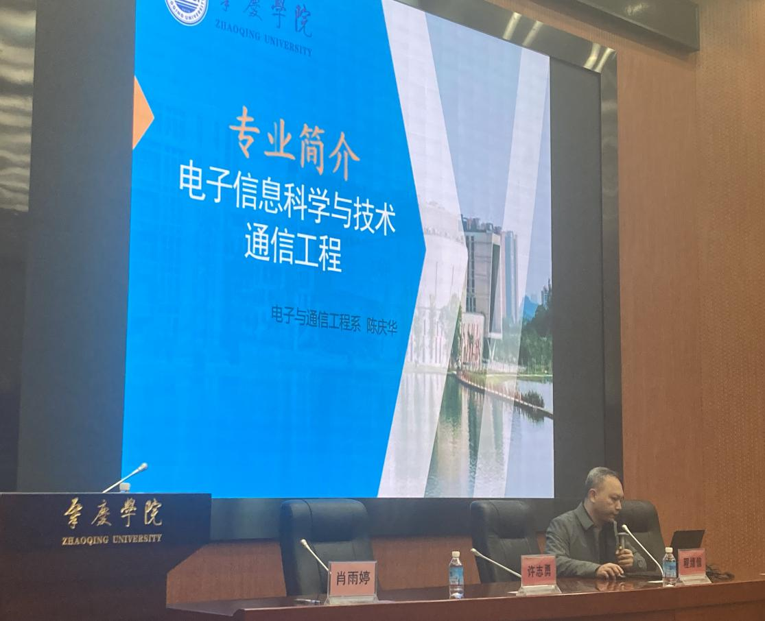 在第二个环节,公司电子信息科学与技术专业负责人陈庆华,以及电子科学与技术专业负责人许志勇为同学们分别介绍了通信工程、电子信息科学与技术、电子科学与技术三个具体分流专业的详细情况,围绕各专业的共通点和教学特色,循序渐进地引导同学们了解各个专业的学科背景、专业课程与能力、课程地图以及就业需求和方向等内容,帮助同学们更加全面地了解各专业未来发展的可能性,得到了同学们的积极响应。
