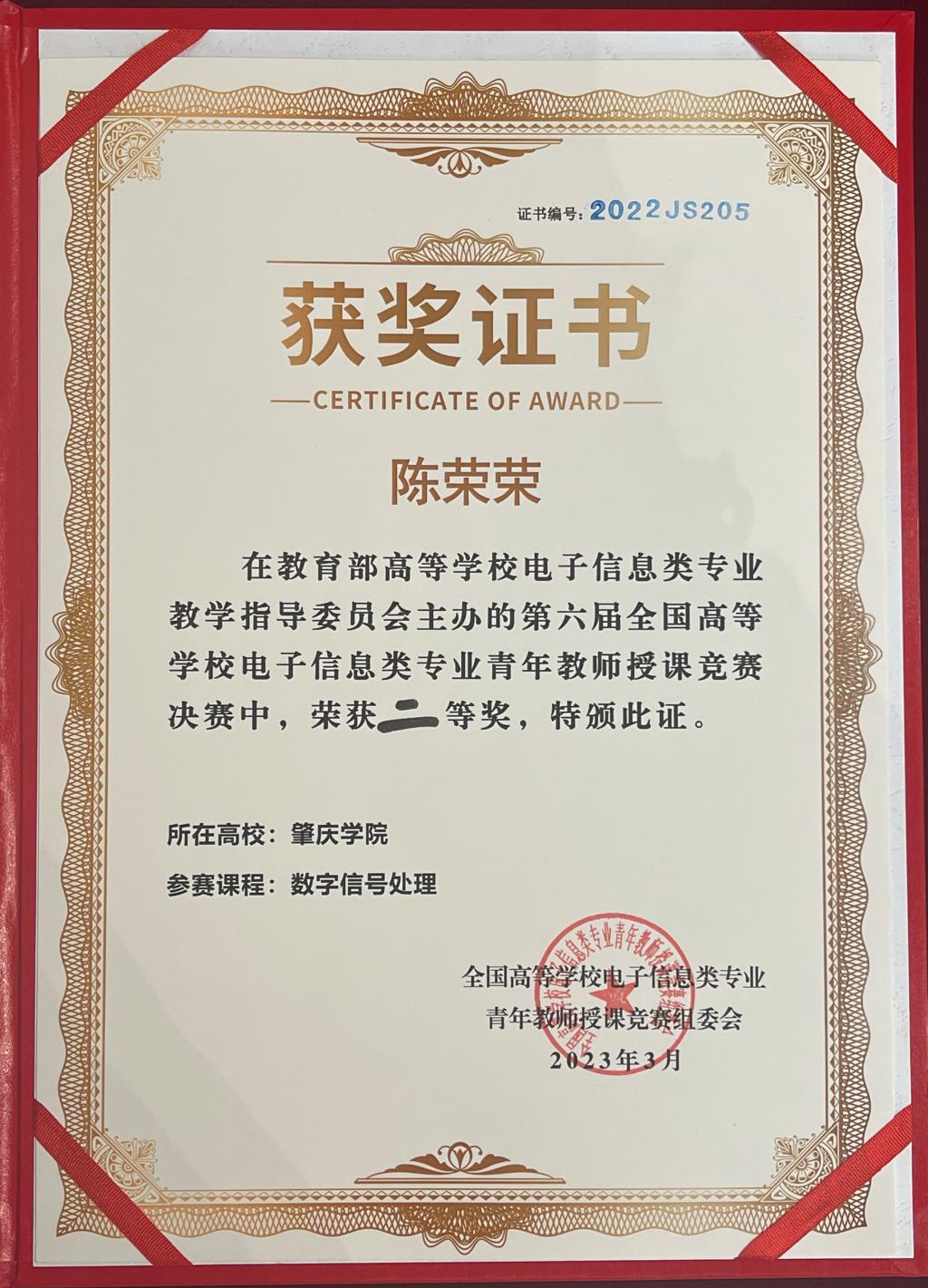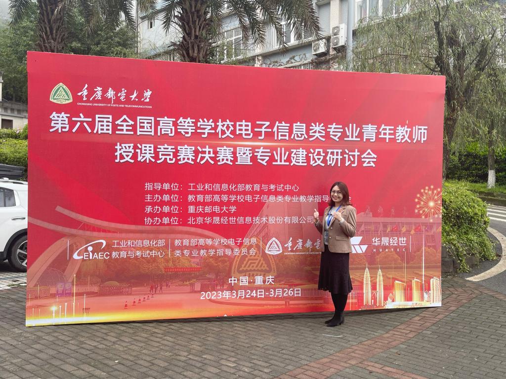 2023年3月24-26日,由教育部高等公司电子信息类专业教学指导委员会主办的第六届全国高等公司电子信息类专业青年教师授课竞赛决赛在重庆邮电大学举行。第六届全国高等公司电子信息类专业青年教师授课竞赛预赛于2022年9月13日结束,根据比赛规则,各赛区的一等奖、二等奖获得者参加了在重庆邮电大学举办的现场决赛,角逐全国奖项。陈荣荣老师在预赛中从华南赛区突围,获得了参加决赛的资格。