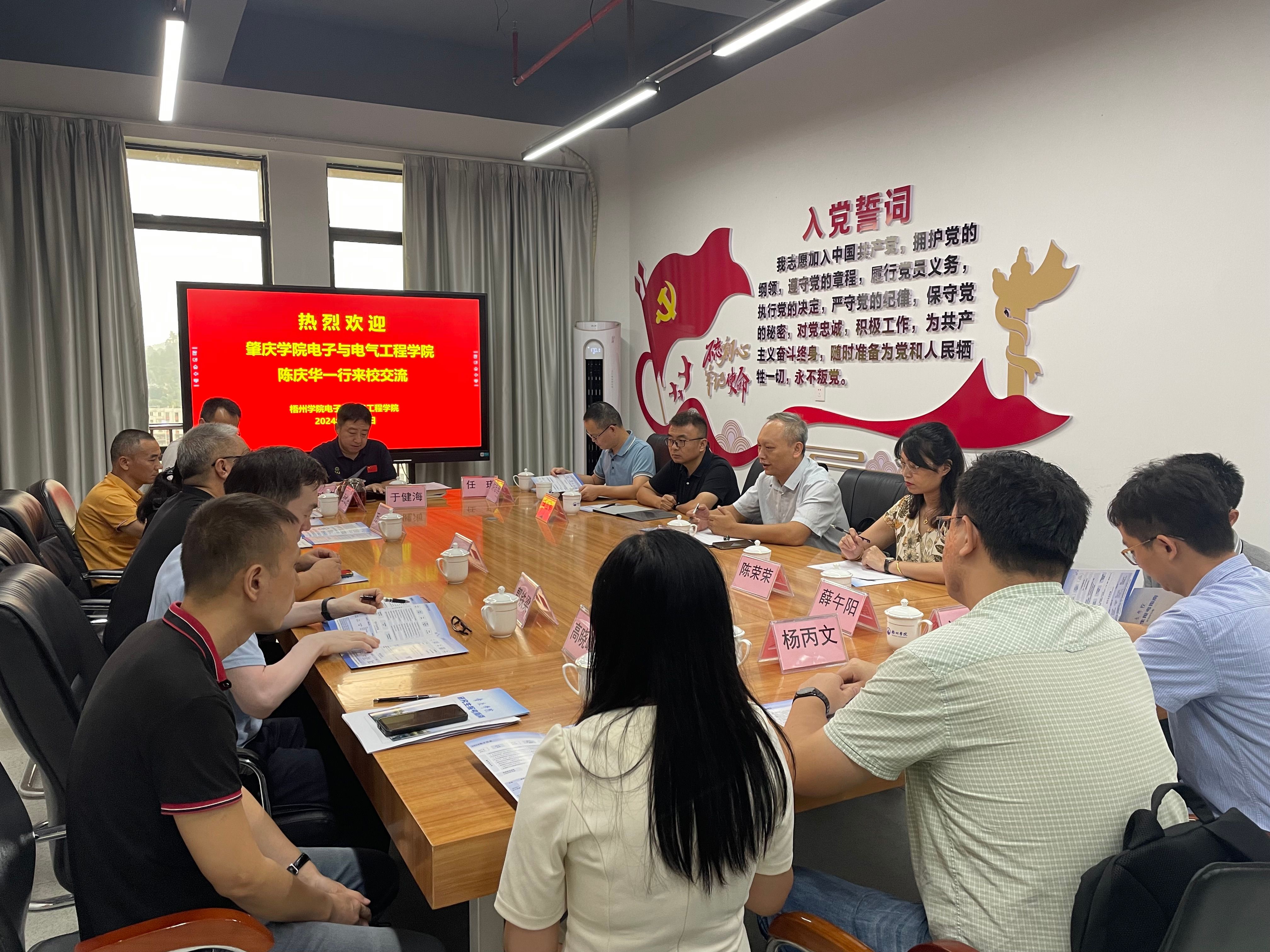 梧州公司电子与信息工程公司经理张文祥对陈庆华一行的到来表示热烈欢迎。他详细介绍了公司的历史沿革、团队建设、科学研究、团队队伍以及人才培养等基本情况。张文祥表示,他们一直致力于推动学科交叉融合,加强实践教学和创新能力培养,希望与我院加强交流与合作,共同提升学科水平。