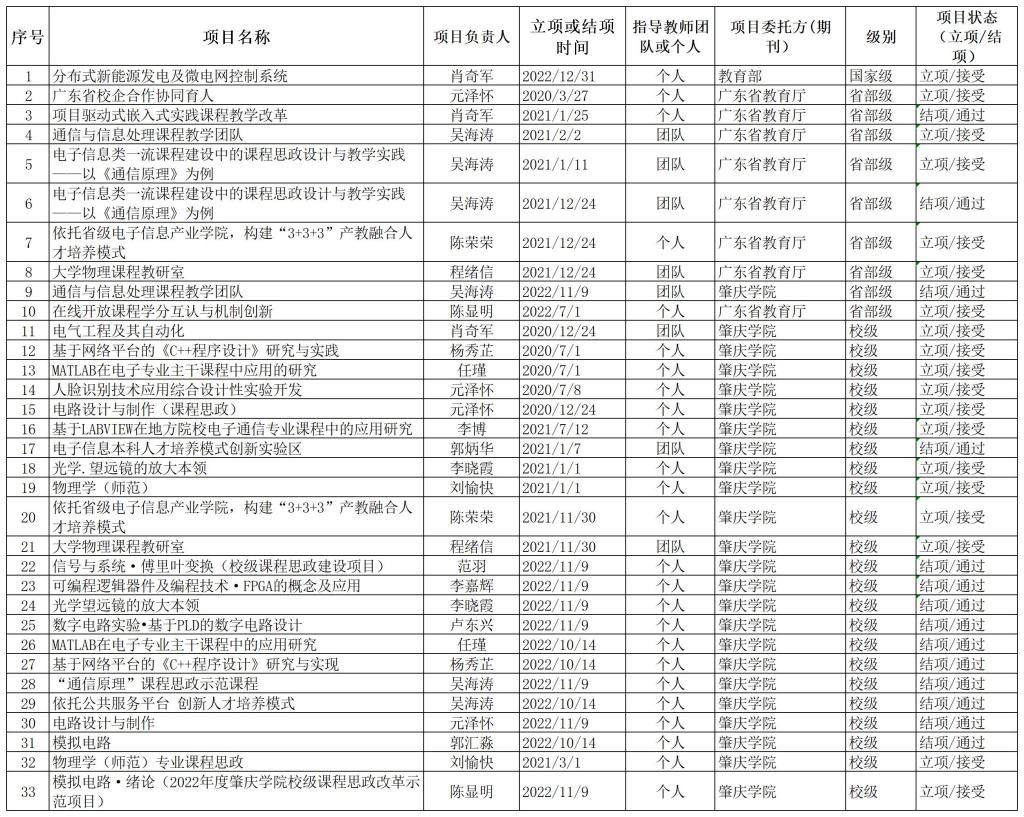 2020-2023年教学改革项目