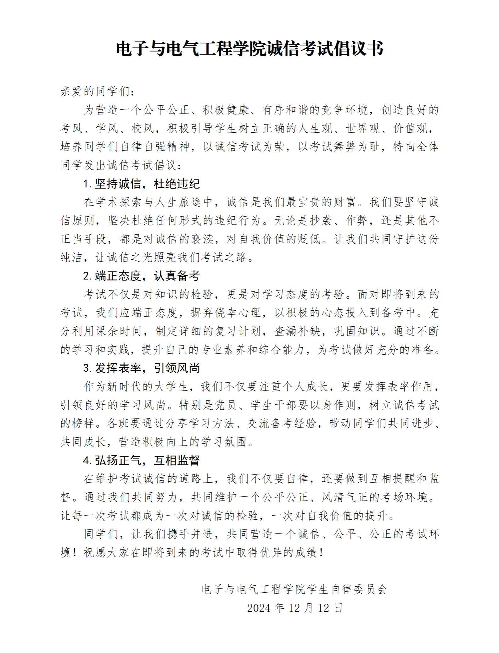 诚信考试倡议书