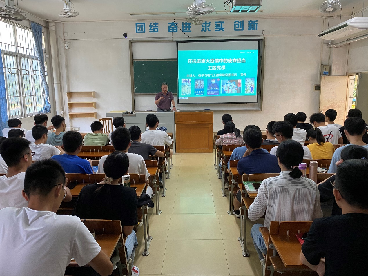 最后黄伟书记作总结讲话:中国在党中央的领导下,充分发挥我国制度优势,取得抗击新冠肺炎疫情斗争重大战略成果。此外,黄伟书记希望大家在常态化防控中,保持积极向上的心态,注重锻炼身体,同时也要把自己的专业知识学好。