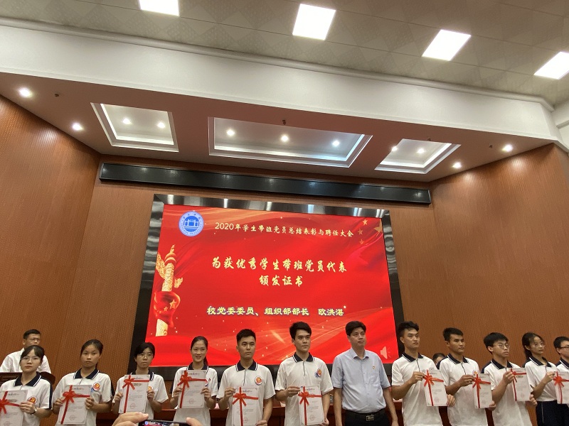 会上,公司对2019-2020学年度优秀带班征文、带班党员标兵、优秀带班党员等进行了表彰,并向新聘任带班党员颁发了聘书。其中,在优秀带班征文活动中,公司荣获三等奖1人,优秀奖1人;获得“2019-2020学年带班党员标兵”2人,“2019-2020学年优秀带班党员”8人。公司2019-2020学年度新聘带班党员代表上台接受聘书。