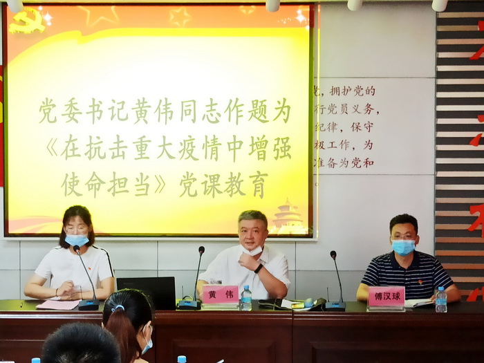 会上,黄书记首先带领大家重温了入党誓词,接着为毕业生党员讲授了题为《在抗击重大疫情中增强使命担当》的党课,并在之后对毕业生党员们深情地读出了公司党委写给毕业生党员的一封信。黄书记强调,各位毕业生党员要继续紧密地团结在以习近平同志为核心的党中央周围,奋发有为,锐意进取,在疫情中发挥党员的先锋模范作用,在生活中继续不忘“为人民服务”的宗旨,牢记 “厚德、明智、博学、力行”的校训,胸怀大志,踏实走好人生征途中的每一步。