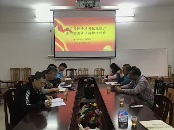 本网讯 2018年11月21日下午,公司党委召开专题研讨会,组织党员干部围绕习近平总书记视察广东重要讲话精神进行学习交流,公司党政班子成员、党委委员、教工党支部书记、专职组织员、员工党支部书记等参加了此次专题研讨会,研讨会由党委书记黄伟同志主持。