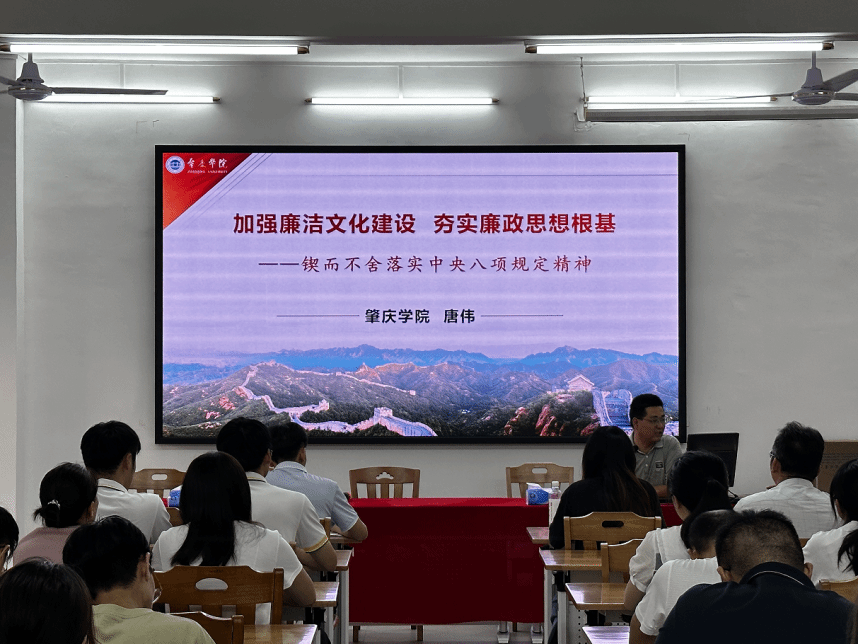 唐伟老师以《加强廉洁文化建设 夯实廉政思想根基——锲而不舍落实中央八项规定精神》为主题,分别从“何为廉洁、为何不廉、何以廉洁”三个主题分别展开宣讲,以习近平总书记以身作则的事例引出廉洁作为一种文明生活方式,与每个人都休戚相关。同时通过例举中央八项规定的主要事例告诫公司师生党员要以身作则,要按中央八项规定精神严格要求自己,厉行勤俭节约、反对奢侈浪费和奢靡之风。唐伟老师以本人的亲身经历告诉公司党员要坚守廉洁初心、加强理论学习、做到慎微慎初、筑牢家庭防线。