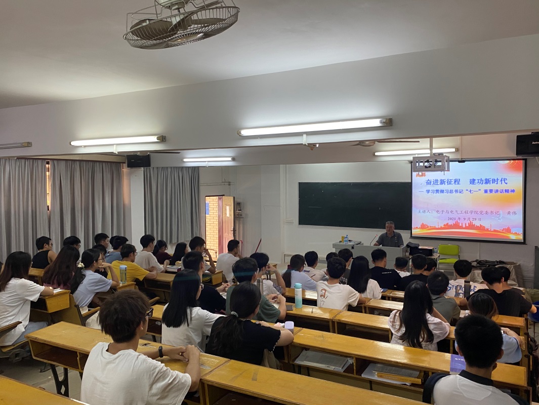 本网讯 (通讯员 蓝胜婷 温咏琳)为落实好在全党开展党史学习教育,使党史深入人心,进一步深化对党的认识,9月29日下午15时至16时,公司党委于实验大楼128室召开2021年第三期分党校培训暨党史学习教育专题党课——《奋进新征程  建功新时代》,此次党课由公司党委书记黄伟同志主讲,公司员工积极分子及党员代表参加了此次党课教育。