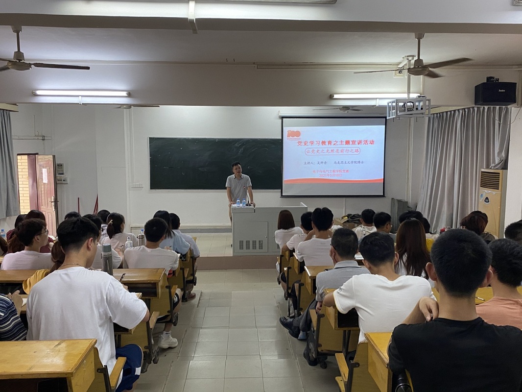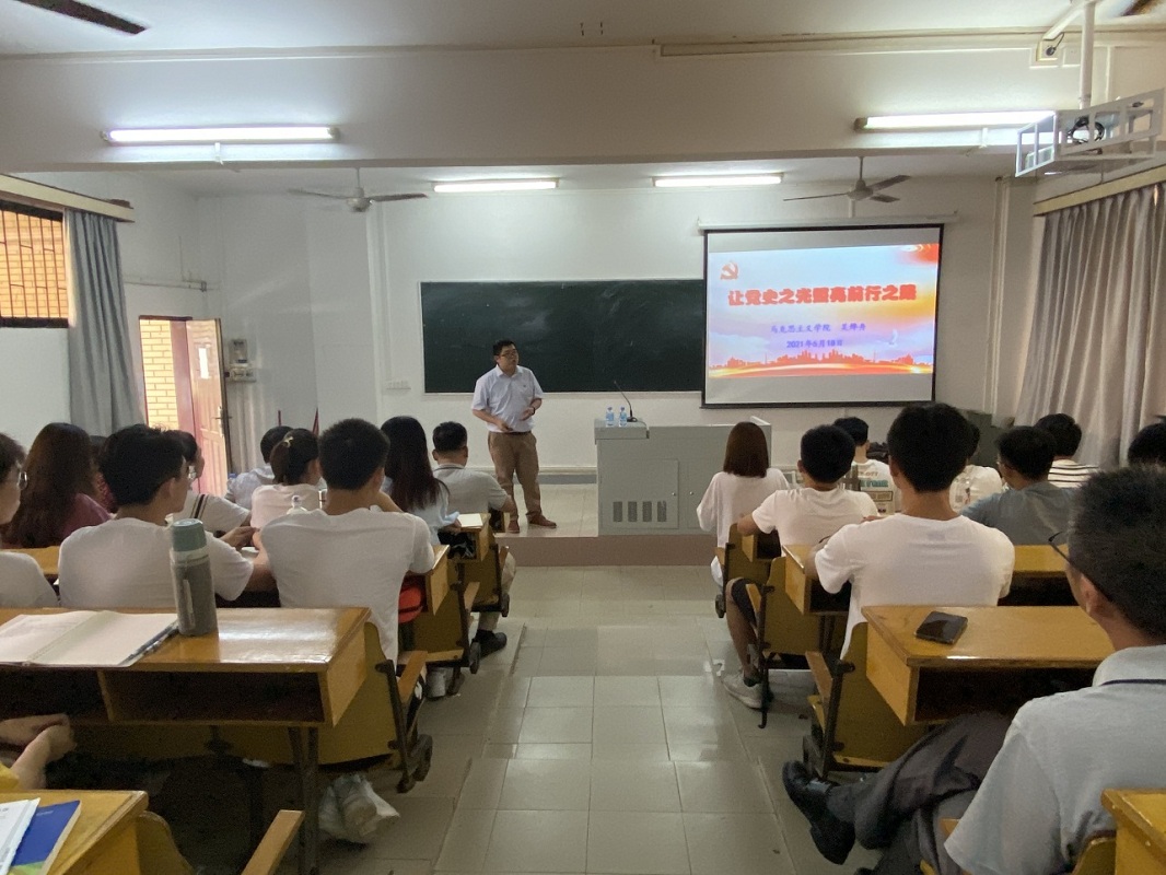 本网讯(通讯员 蓝胜婷)为更好地了解党的百年历史,牢记党的初心和使命,增强责任意识与使命情怀以信仰之光照亮前行之路。518日下午,bevictor伟德官网在实验楼128室开展2021年度党史学习教育宣讲活动,邀请公司宣讲团成员、马克思主义公司吴烨舟博士主讲,公司教师党员代表、员工党员代表以及入党积极分子等一百余人参与了此次党课。宣讲活动由公司党委副书记傅汉球主持。