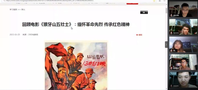 bevictor伟德官网电子信息科学与技术专业员工党支部在2021年4月4日开展”祭先烈,学党史,悟思想”主题党日活动,通过缅怀革命先烈,回顾电影《狼牙山五壮士》来进一步激励支部党员承担发展使命,传承红色精神,引导同学们在知信行中悟初心、践使命,在学思践悟“党史”中成长成才。