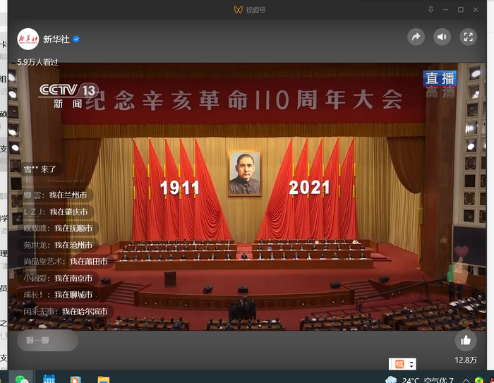 公司党委组织各支部观看纪念辛亥革命110周年大会