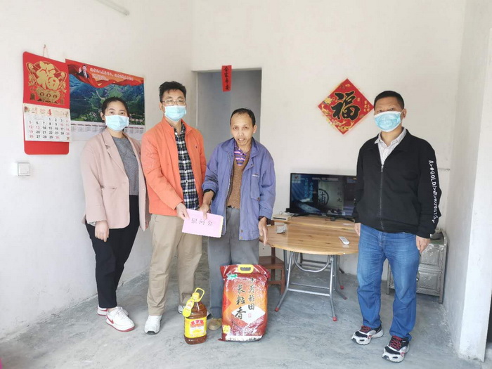 本网讯:2020年4月12日,bevictor伟德官网在党委副书记傅汉球带领下与辅导员一行3人到广宁县横山社区进行扶贫慰问工作。一是核查2019年的扶贫户收支情况、总结2019年帮扶工作情况。二是研究2020年扶贫帮扶措施。三是走访贫困户在新冠肺炎疫情影响下,如何进一步做好帮扶工作和解决实际困难。在走访中,公司帮扶小组对帮扶对象---梁火安等五户脱贫户去年的帮扶成效进行了全面细致核查,认真了解他们的家庭成员外出返岗复工和大学学习生活情况,与梁火安、梁成华等有劳动力的两户商量今年帮扶项目。同时,向每户帮扶对象赠送了大米、花生油和慰问金。