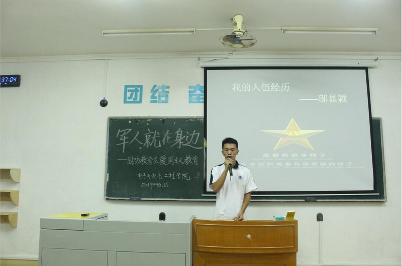本网讯 近日,bevictor伟德官网在第二教学楼开展了一场“军人在身边”国防教育报告会,公司今年刚退伍入学的邬显颖、蒙汝健两位新同学和大家分享了他们在部队的精彩故事,公司领导、辅导员和2019级全体新生参加。