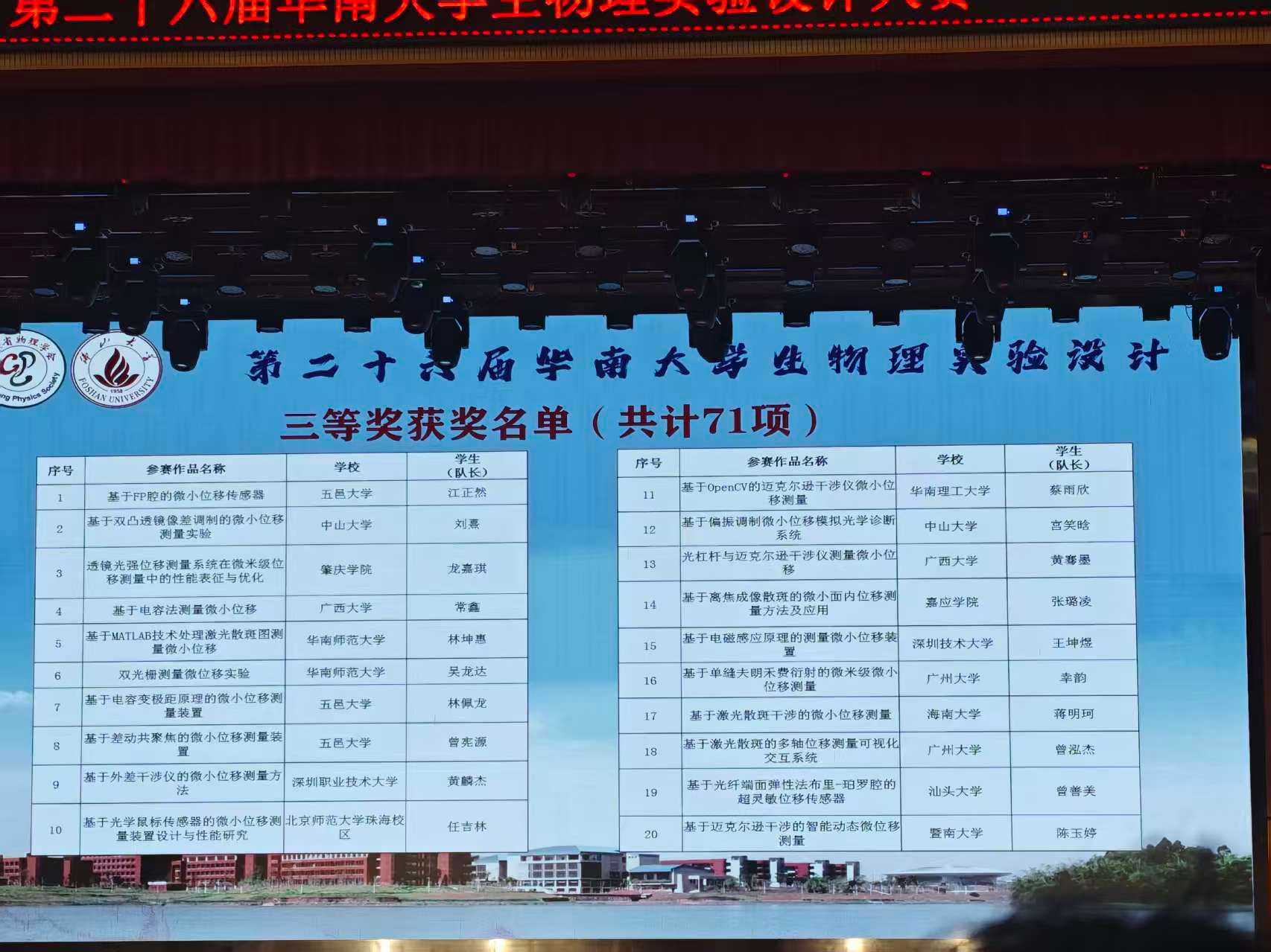 【本网讯】 近日,第二十六届华南老员工物理实验设计大赛决赛在佛山大学仙溪校区成功举行。在王霞辉、刘愉快老师的悉心指导下,公司员工龙嘉琪、邓裕升、胡汇明、庄海欣、刘滨城组建的团队凭借出色表现荣获省级三等奖。