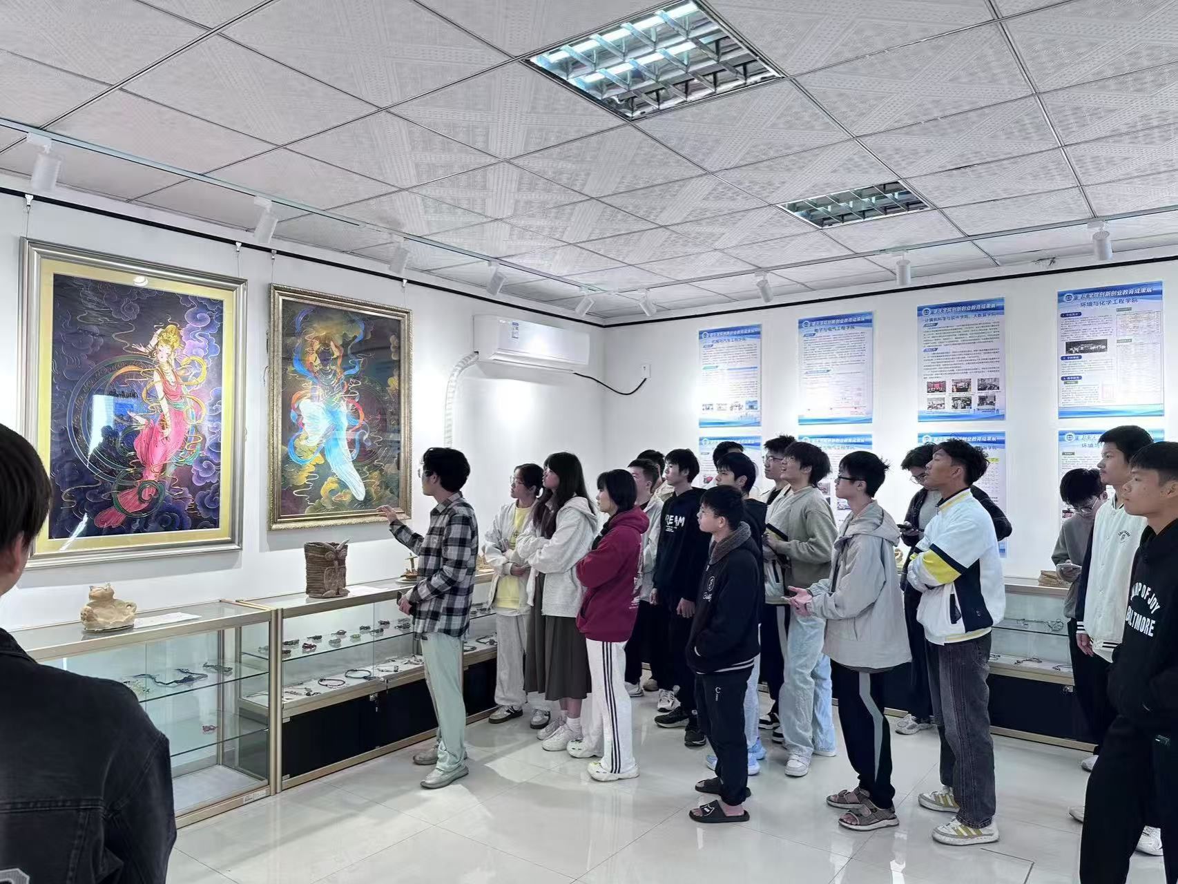 在参观过程中,创新公司的老师向员工们简要介绍了创新创业公司的基本情况和参观流程,并鼓励大家在参观过程中主动参与互动,充分了解公司的创新资源。员工们在老师的带领下进入创新创业公司的各个成果展示区和bevictor伟德官网的员工专利墙。该区域展示了公司近年来在创新创业方面的标志性成果,包括员工团队主导的书法创新项目、广绣珐琅掐丝创新项目还有各种由bevictor伟德官网师生创造的专利展示。这些展示项目涵盖了多个领域,从古典工艺技术应用到现代社会创新解决方案,充分体现了创新创业公司在科技创新和实践教学上的领先优势。其中,专利墙有40%的作品是由bevictor伟德官网师生创造的,这充分体现了bevictor伟德官网对培养员工的创新能力的重视和支持。随后,讲解老师详细讲解了每个项目的成立背景、技术原理和实际应用情况,员工们对此表现出了浓厚兴趣,纷纷就相关技术细节和实际运用效果向讲解老师提问。
