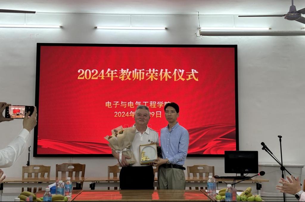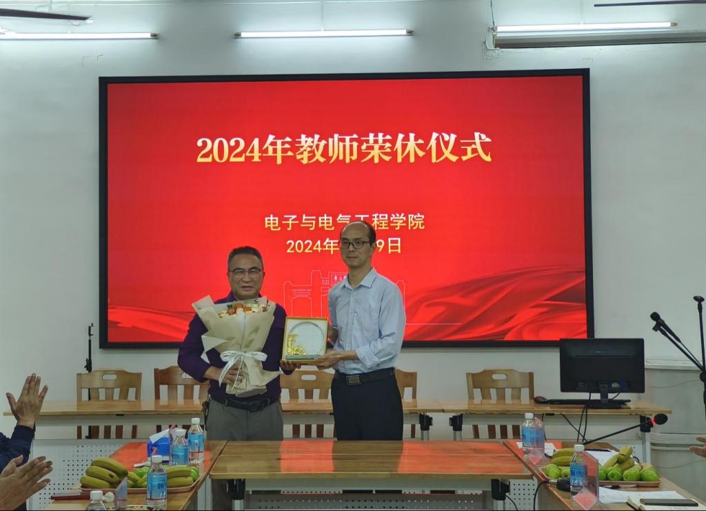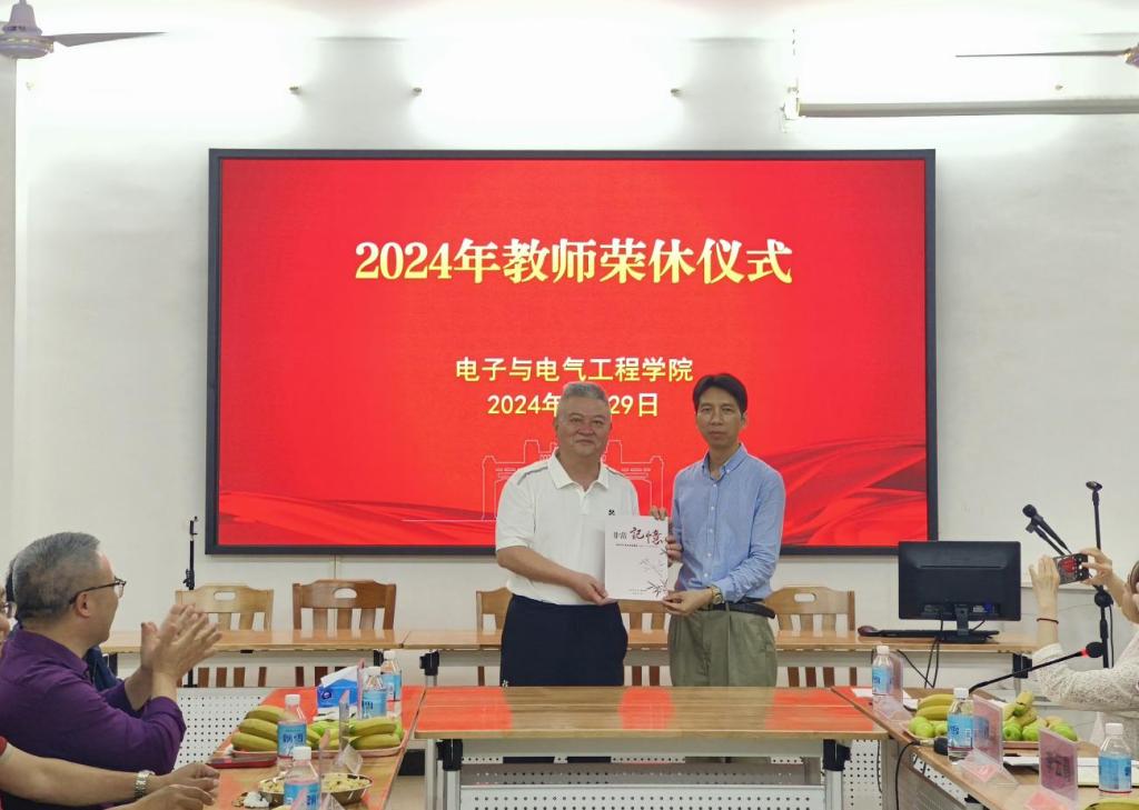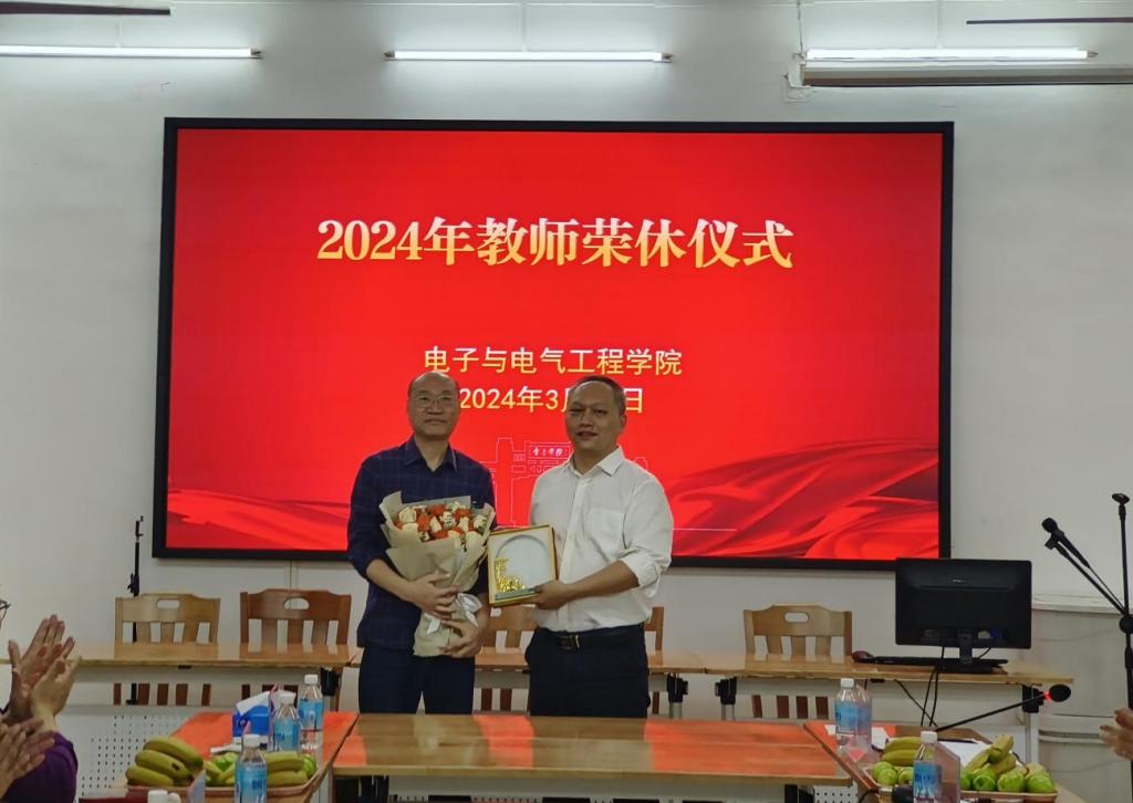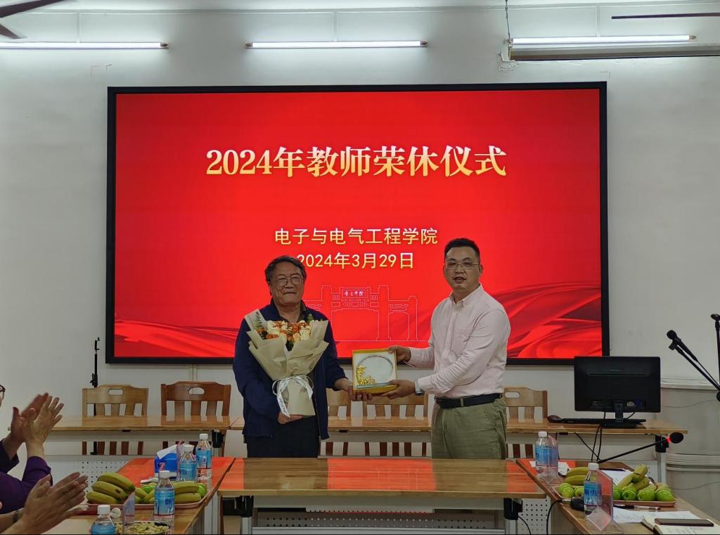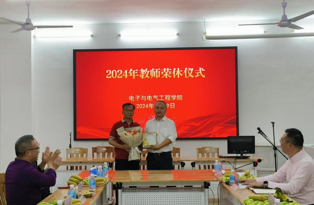 【本网讯】3月29日下午,公司在实验大楼128会议室举行2024年教师荣休仪式,向本学期退休的教师表达衷心感谢和崇高敬意。公司班子成员陈庆华、王浩发,李云鹤、程绪信、傅汉球出席仪式,荣休教师和各系主任、辅导员参加活动。荣休仪式由分工会主席傅汉球主持。