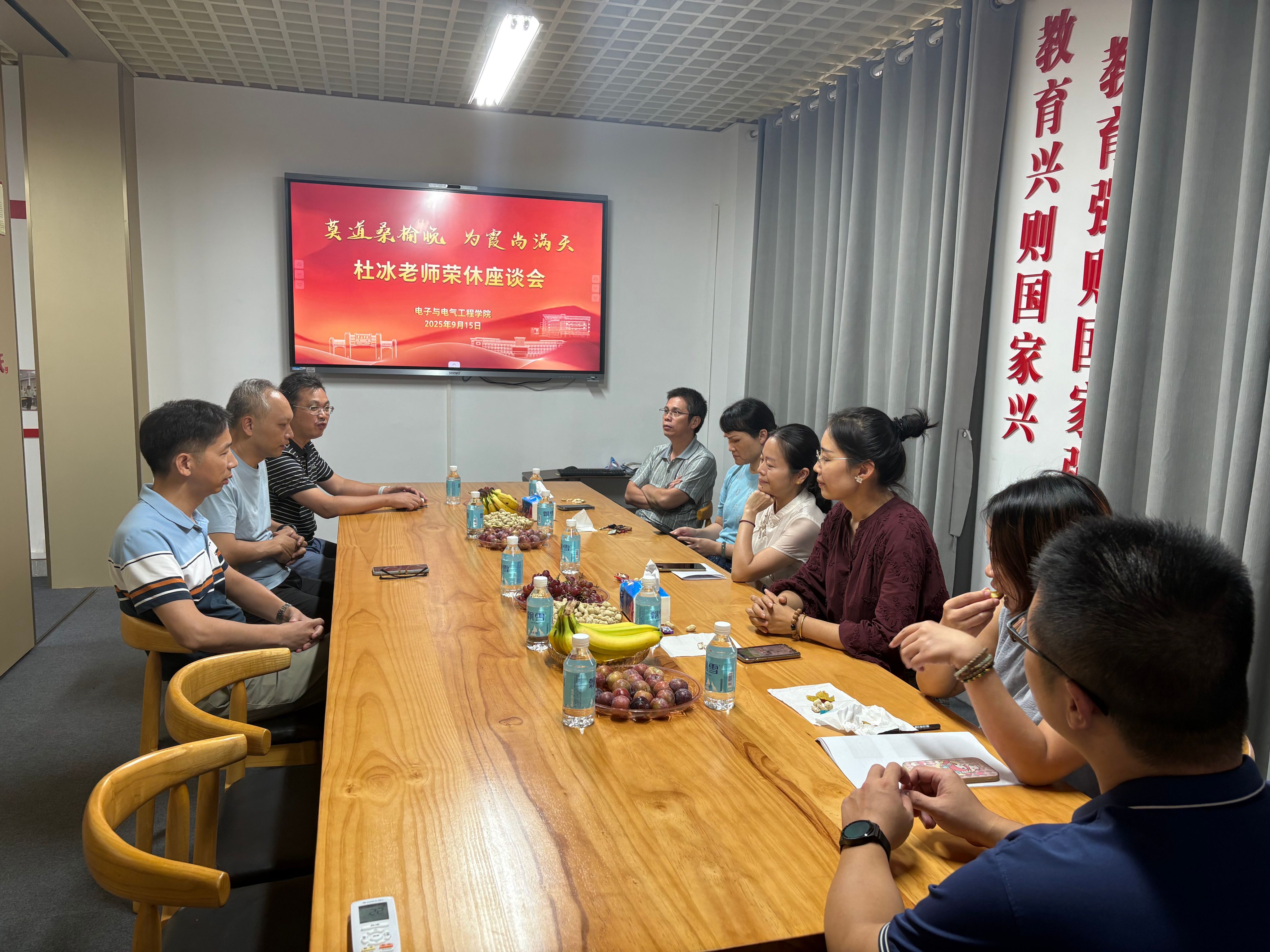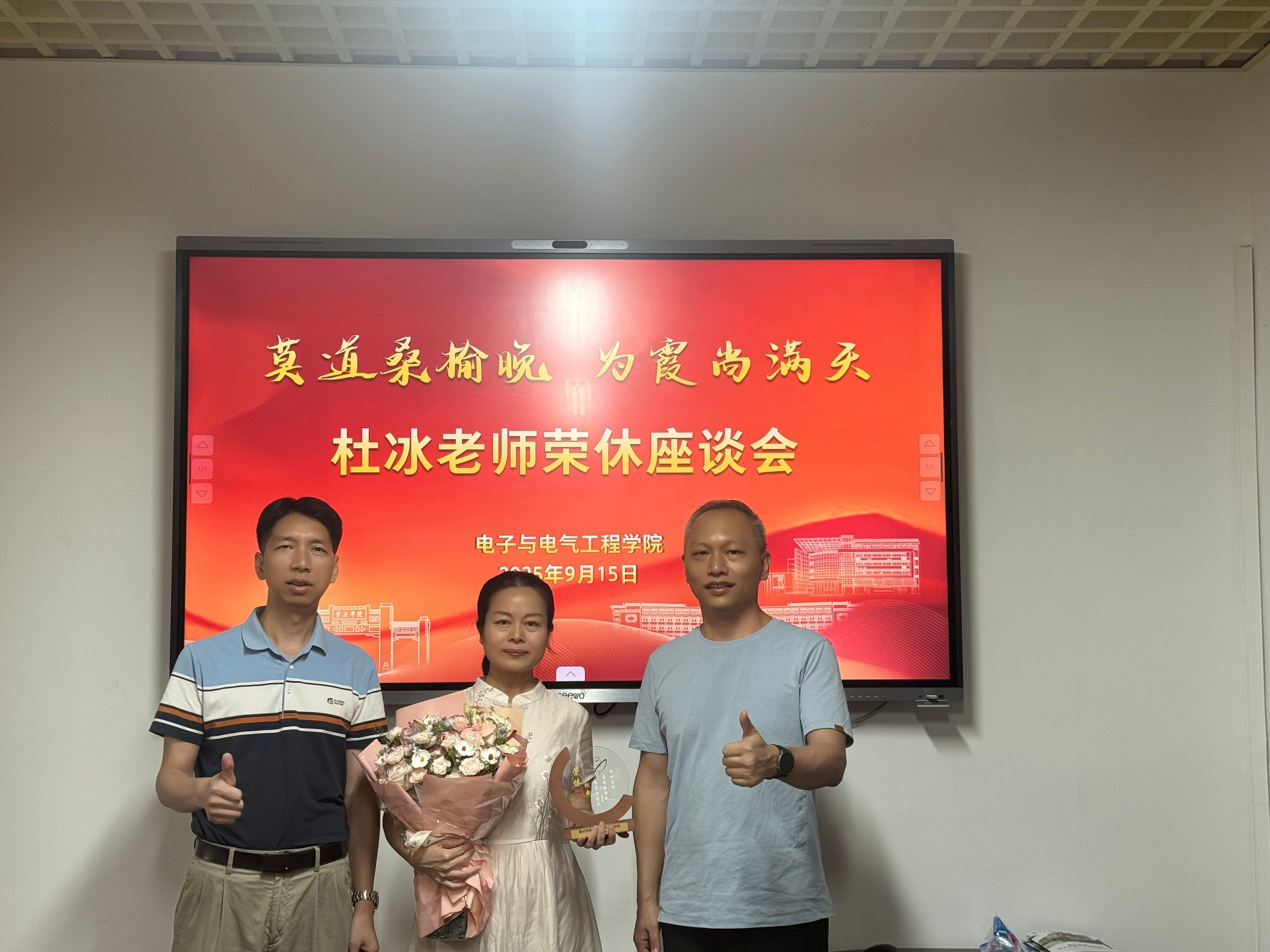 【本网讯】2025年9月15日,电子与电气工程公司为杜冰老师举办了一场温馨而庄重的荣休仪式,公司领导、工会委员和教师代表等齐聚一堂,共同见证这一难忘时刻。