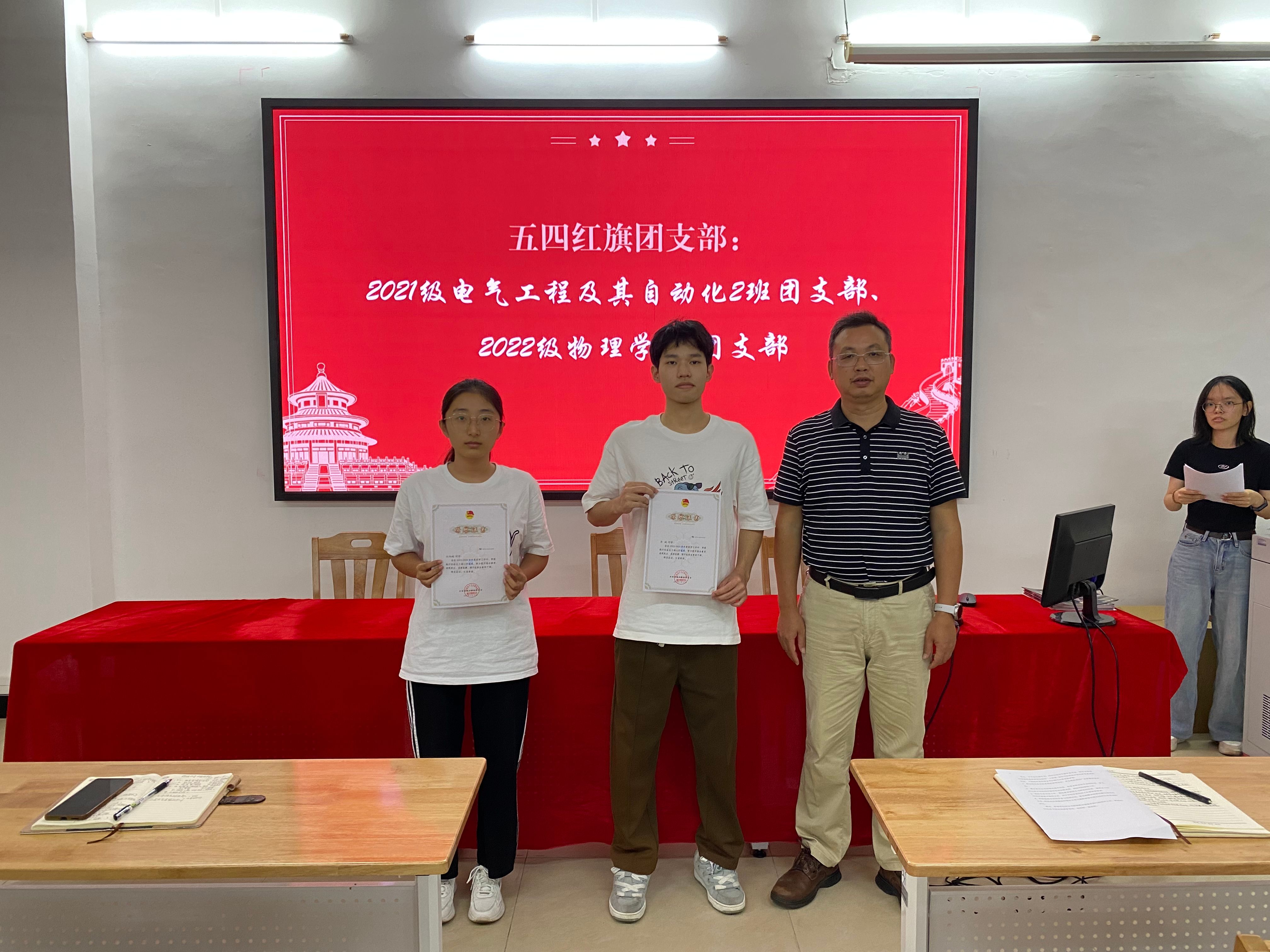 会议还对公司2023-2024学年度五四红旗团支部、优秀共青团干部、优秀共青团员进行了表彰,傅汉球、刘浏分别为获奖团支部、个人颁发证书。