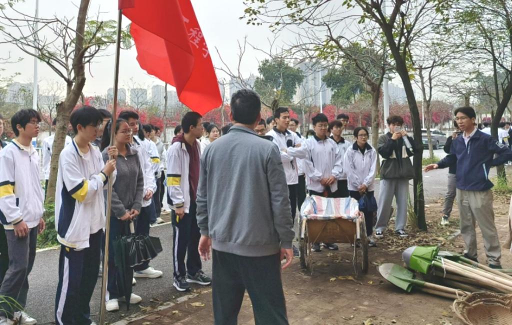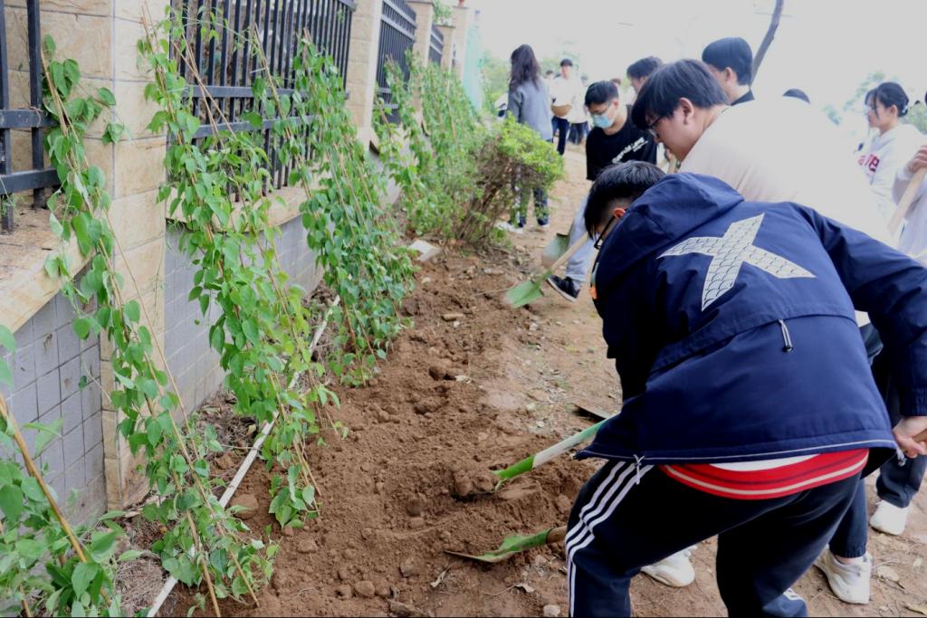 同学们来到植树地点,在老师的指导下,分工合作,互相帮助,搬运苗种、挥锹铲土、培土正苗……经过师生的共同努力,一棵棵新苗在阳光下焕发出勃勃生机,为校园增添了一片新绿。