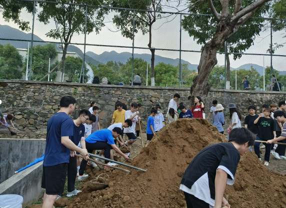 植树活动开始,志愿者们有条不紊地开展工作,大家相互配合,彼此合作,共同完成植树活动。在老师的带领下,活动现场进行得井然有序,到处洋溢着欢声笑语。当看着一株株亲手种下的小树苗在这美丽的春天里焕发生机,大家感受到了劳动的喜悦,也为能共同参与建设美丽校园而感到欣慰。
