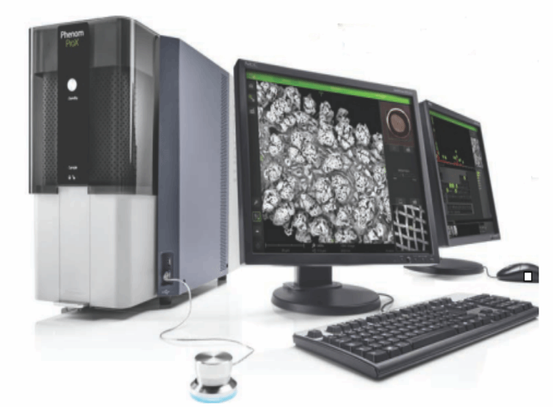 Phenom ProX台式扫描电镜是一款使用高亮度CeB6灯丝的电镜能谱一体机,不仅可以观测样品表面微观形貌,还可以对其表面元素成分进行定性定量分析。